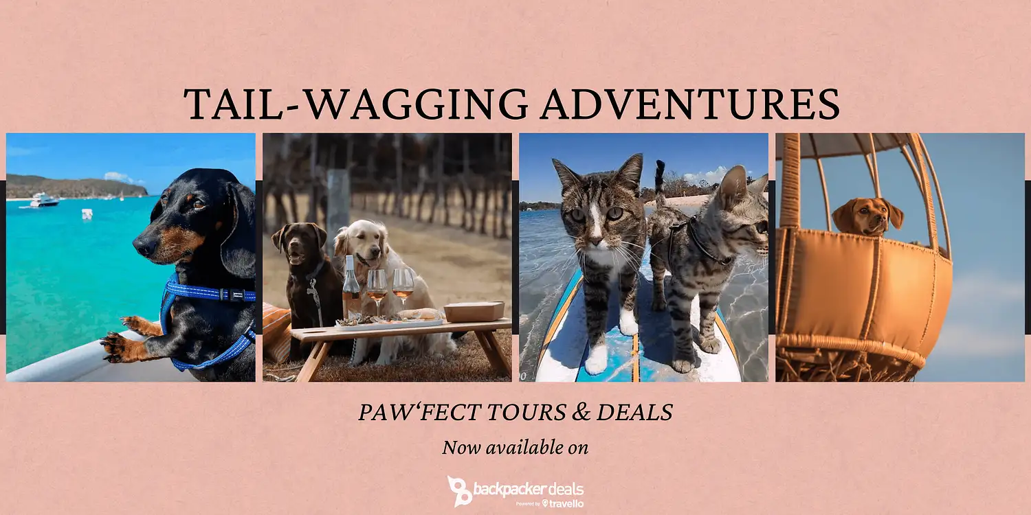 Yip yip hooray! Welcome to Tail Wagging Adventures, the brand-new pet tours brought to you exclusively by Backpacker Deals! We have a range of pawsome tours to choose from, meaning you’re sure to find the purrfect trip for your pet with Tail Wagging Adventures. You’d be barking mad to miss out, so book online today and allow us to show your furry friend what it really means to have a ball!